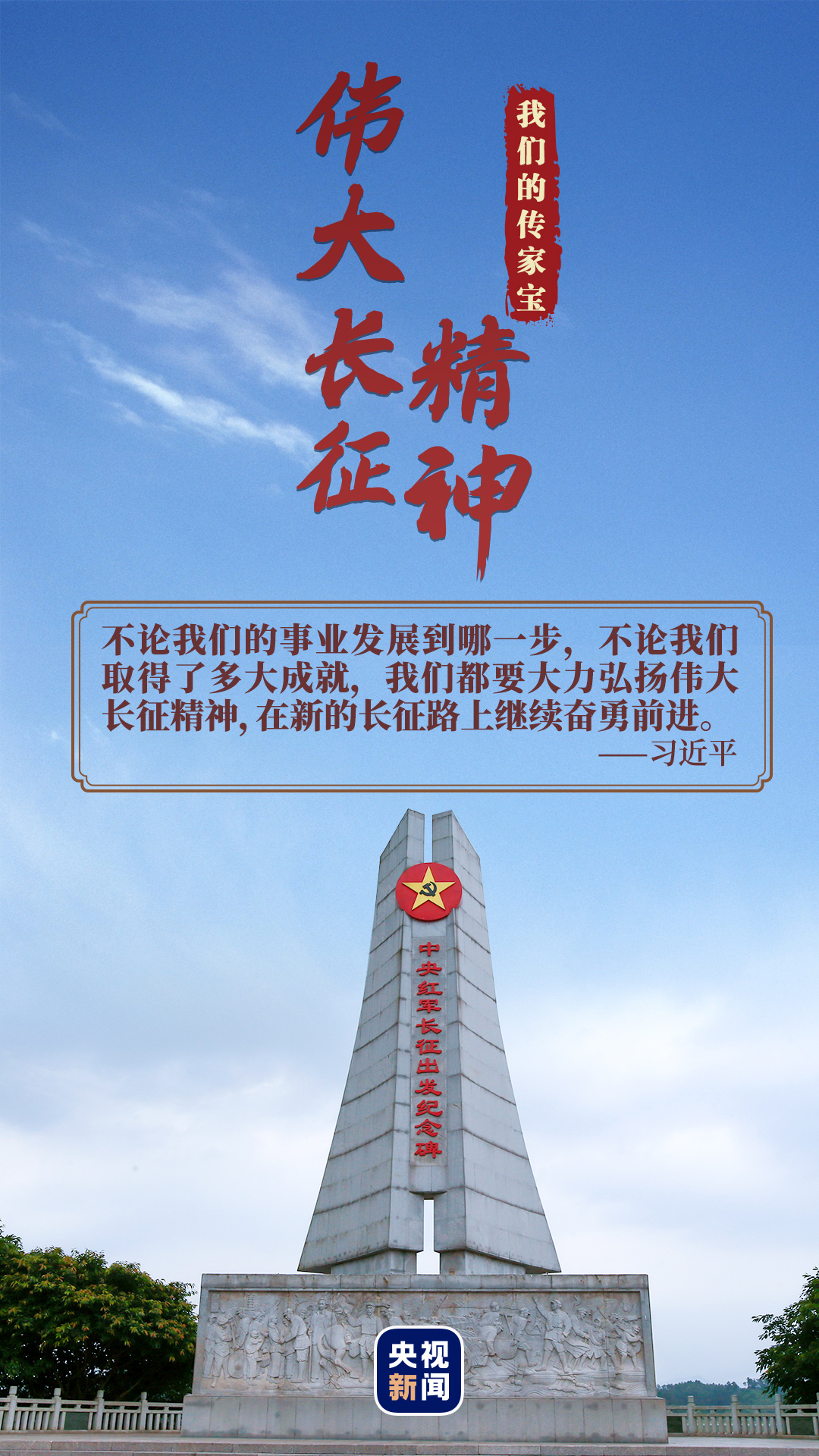 精神所在,就是血脈所在,就是力量所在。一個時代有一個時代的主題,一代人有一代人的使命。新長征路上,我們每一個中國人都要弘揚(yáng)偉大的長征精神。